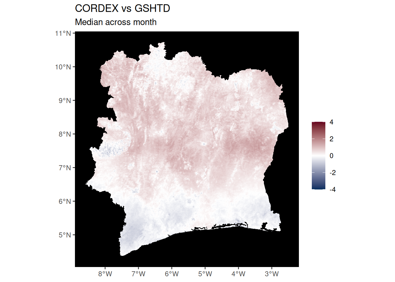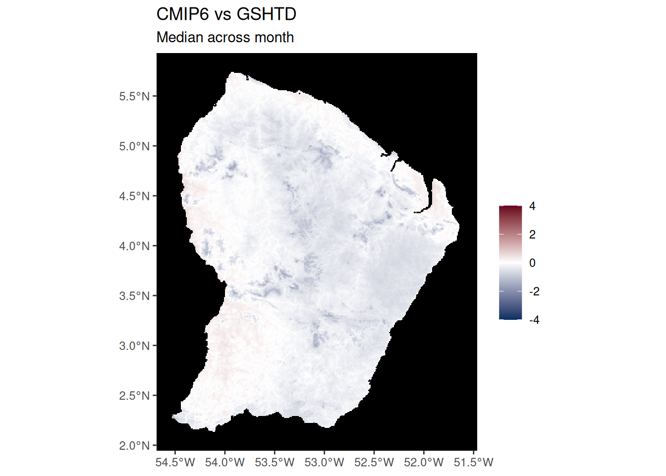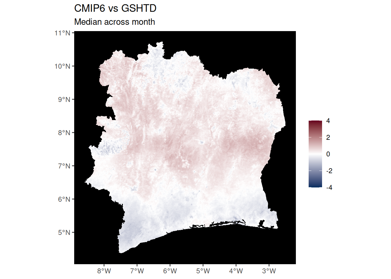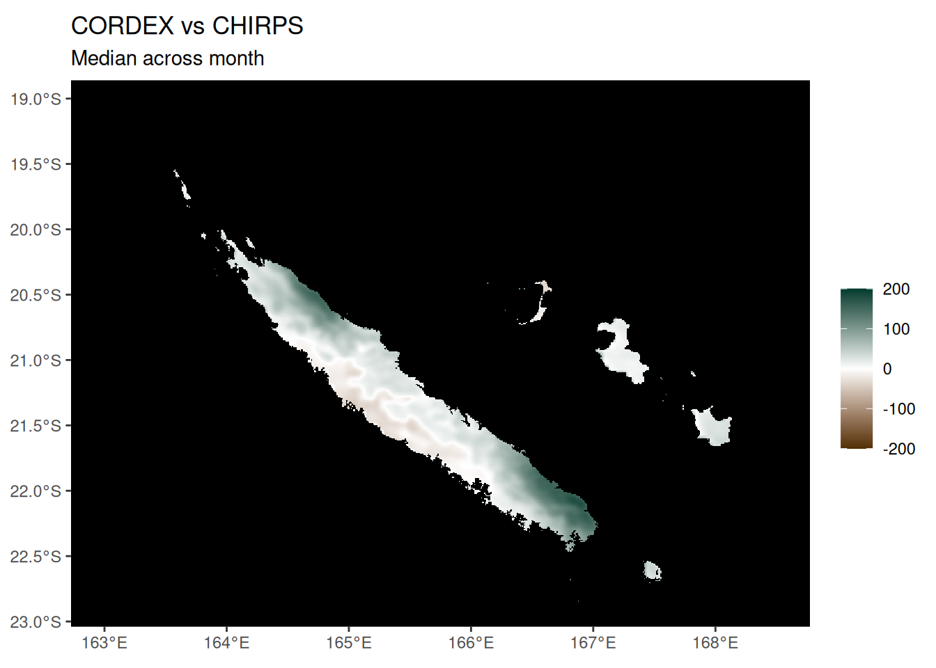 ggtitle("CMIP6 vs CHIRPS", "Median across month") +